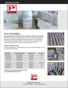 Plibrico Midwest Operations also offers aftermarket replacement tile kits for Cleaver-Brooks package boilers. Backed by our expertise in precast shape manufacturing, the Midwest Operations team is well-positioned to provide high-quality replacement tile kits that are designed and manufactured for a true fit.